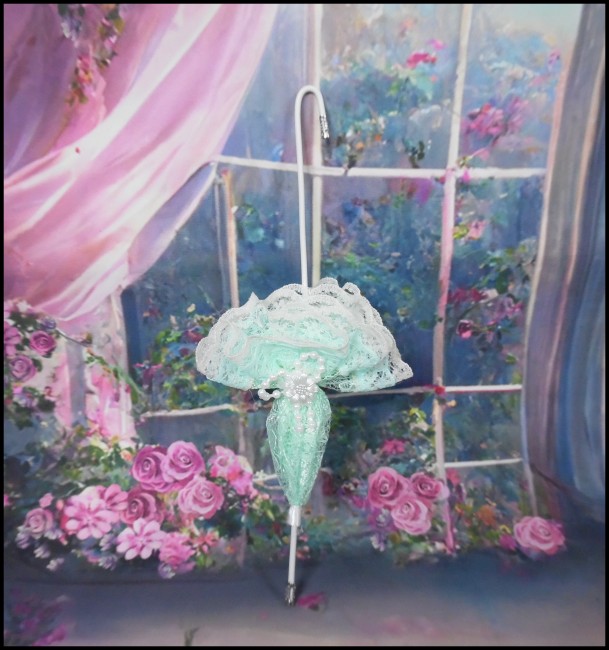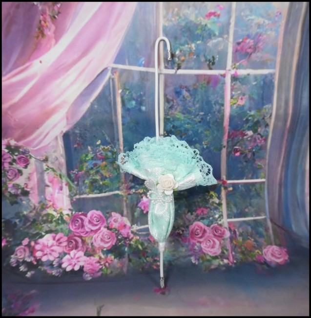 Ombrelle bleu, vert, pour poupée Barbie, Fashion Royalty, Silkstone, Poppy Parker fait main par F3788